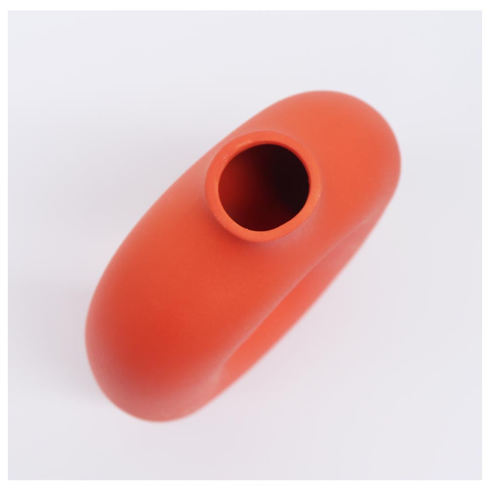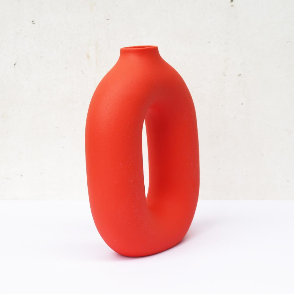 リングベース おしゃれなドーナツ型花瓶 北欧風インテリアに合う花器 一輪挿し 陶器製 シンプル&スタイリッシュ フラワーベース オレンジ 高さ約23cm