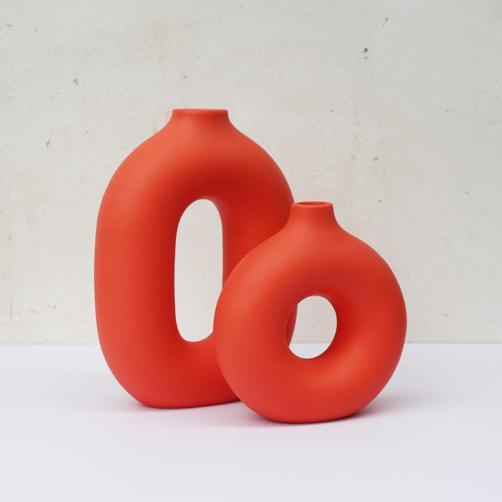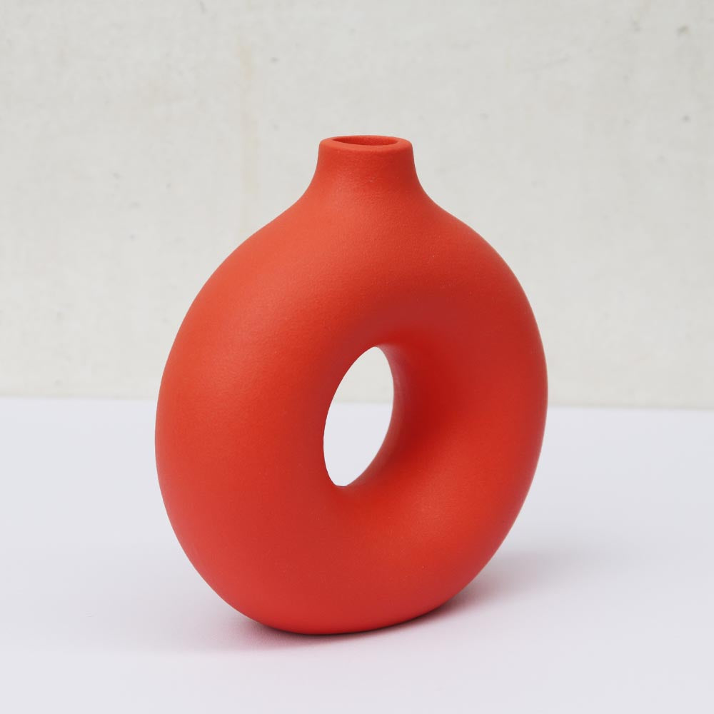 中央に空洞があるリング型の花瓶は、どんなお部屋にも合いやすくアートのようなアクセントをプラスできます。オブジェとして飾るだけでもスタイリッシュな印象に。