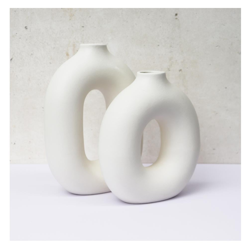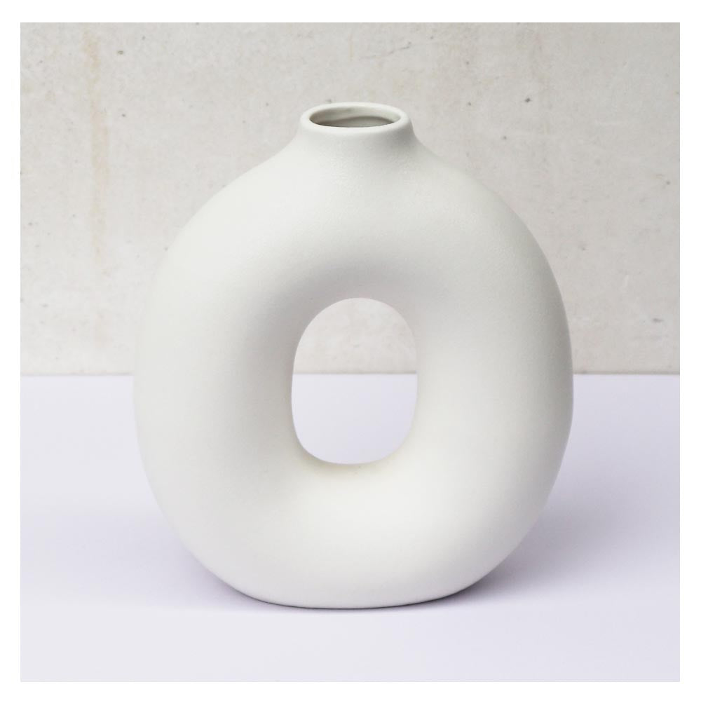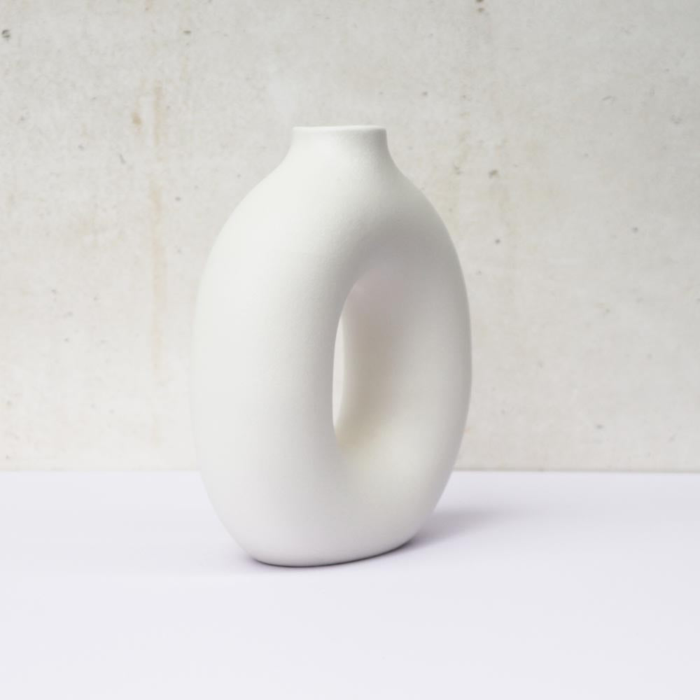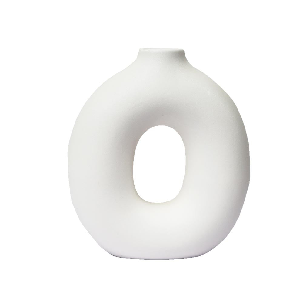 リングベース おしゃれなドーナツ型花瓶 北欧風インテリアに合う花器 一輪挿し 陶器製 シンプル&スタイリッシュ フラワーベース ホワイト 高さ約19cm