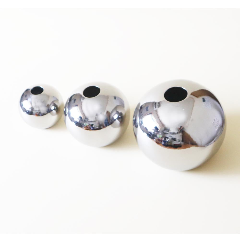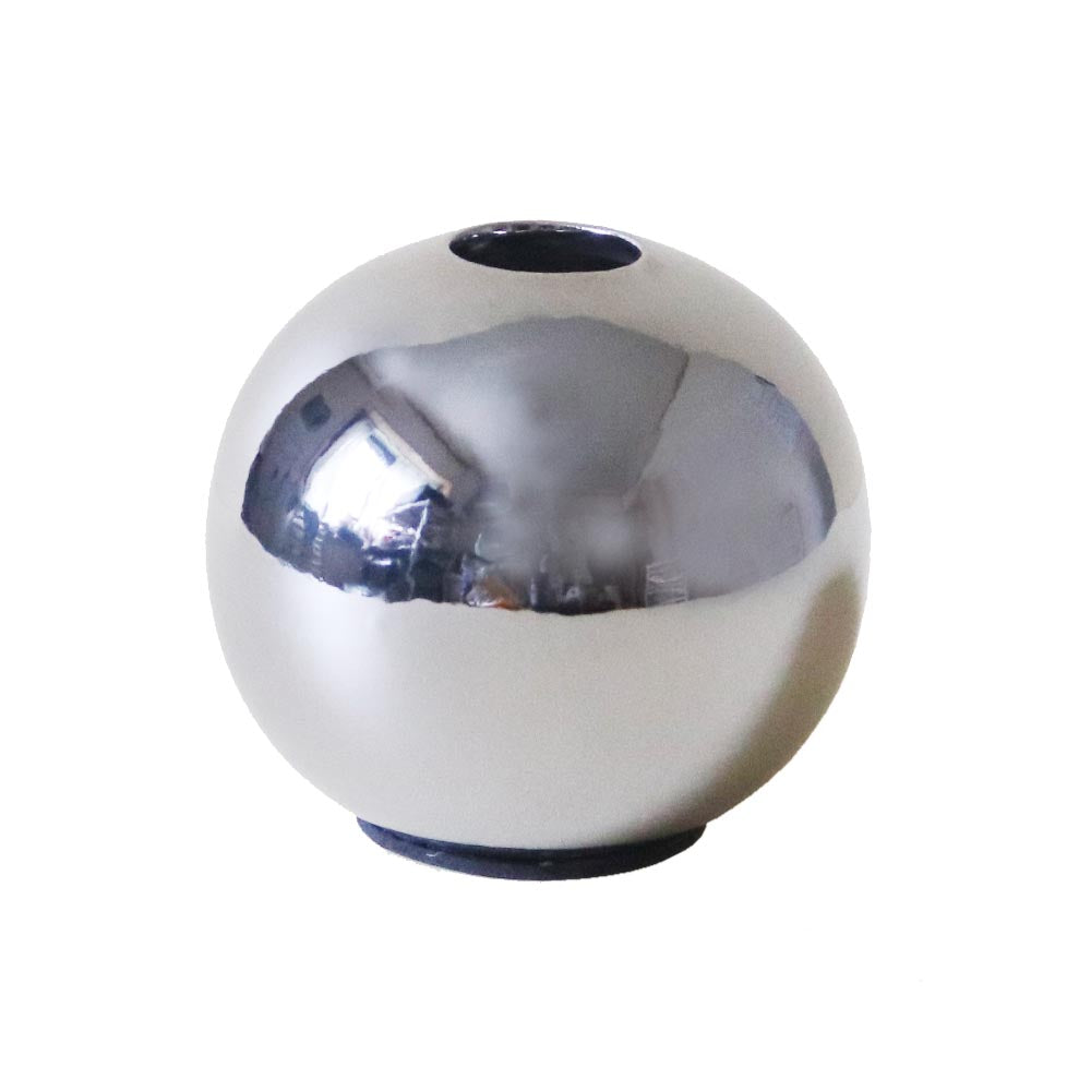 艶やかなシルバーカラーと、ころんとした球形フォルムが目を引く陶器製フラワーベース。